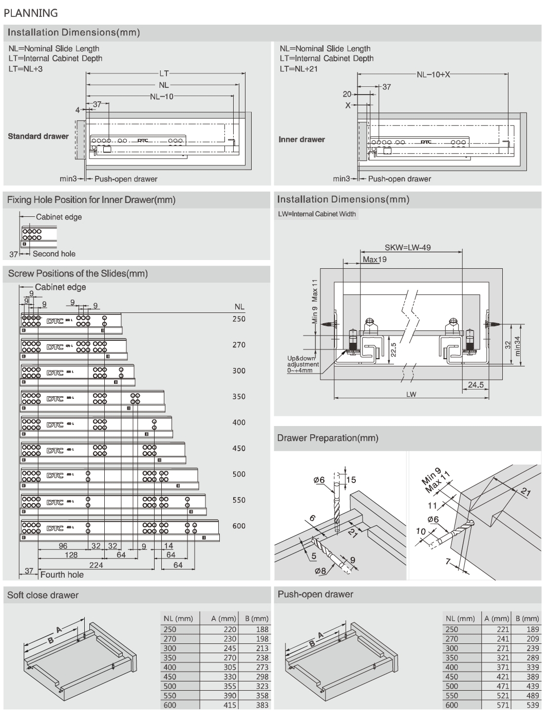 - Μέγιστο πάχος πλευράς συρταριού: 19mm