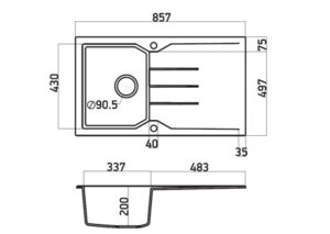 - Εντοιχίζεται σε ερμάριο 40cm και συνοδεύεται από βαλβίδα αποχέτευσης με σύστημα υπερχείλισης & το αντίστοιχο σιφόνι.